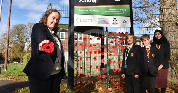 Burnham Grammar School Crochet Club – poppiesThe school runs a crochet club for students and their current project has been making crocheted poppies for Remembrance Day.