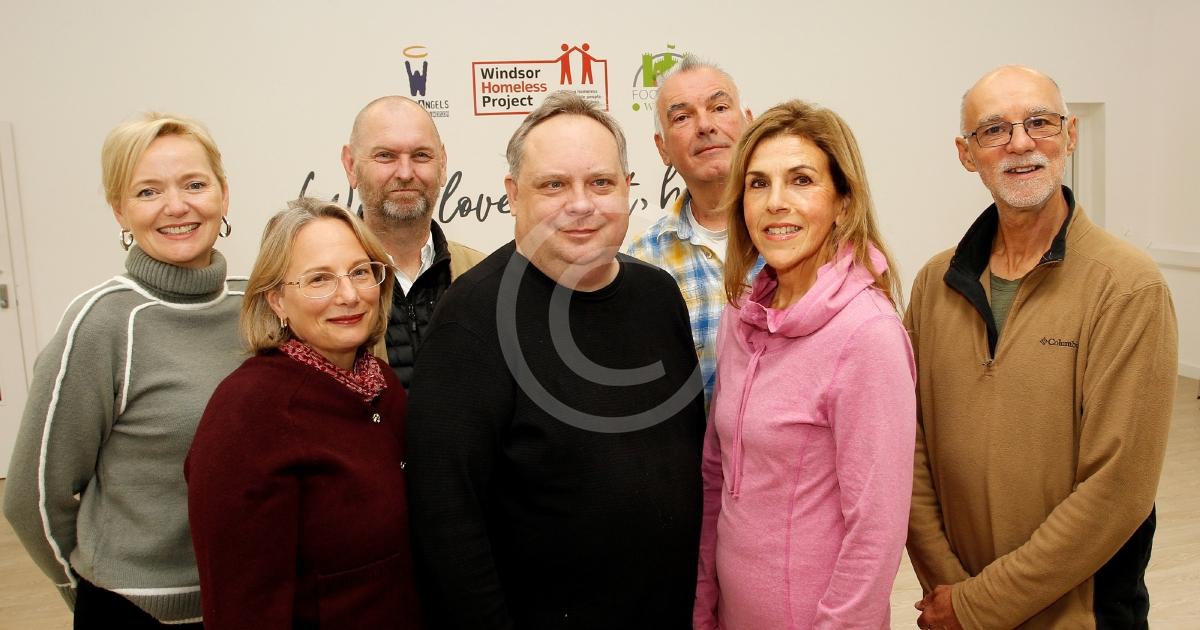 Windsor Homelss Project annual sleep out. L to R Lesa Killoran (Project Support Worker), Carron Edgell (WHP Manager), Nik Howarth (WHP Vol), Joel Embury (Music Org), Kevin Lyons (WHP Vol), Rachel Burgess (WHP Vol0 and Steve Jones (WHP Vol),