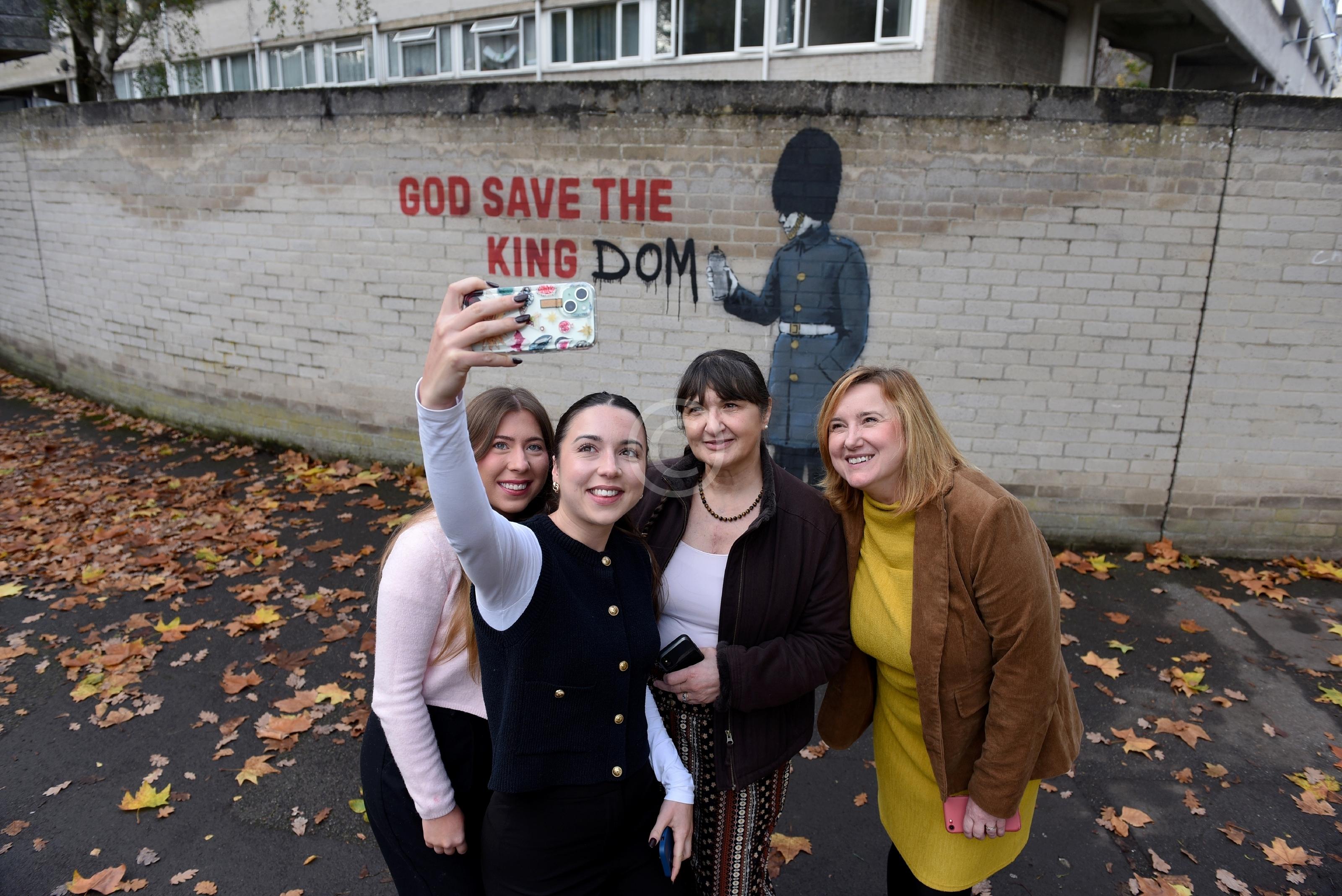 New graffiti on wall at Ward Royal Estate, Charles Street, WindsorPossible BanksyAmanda Heighway with Labrador siblings Watson 4 (brown) and Rosie 3 (black)12.11.25 and 13.11.25