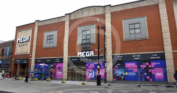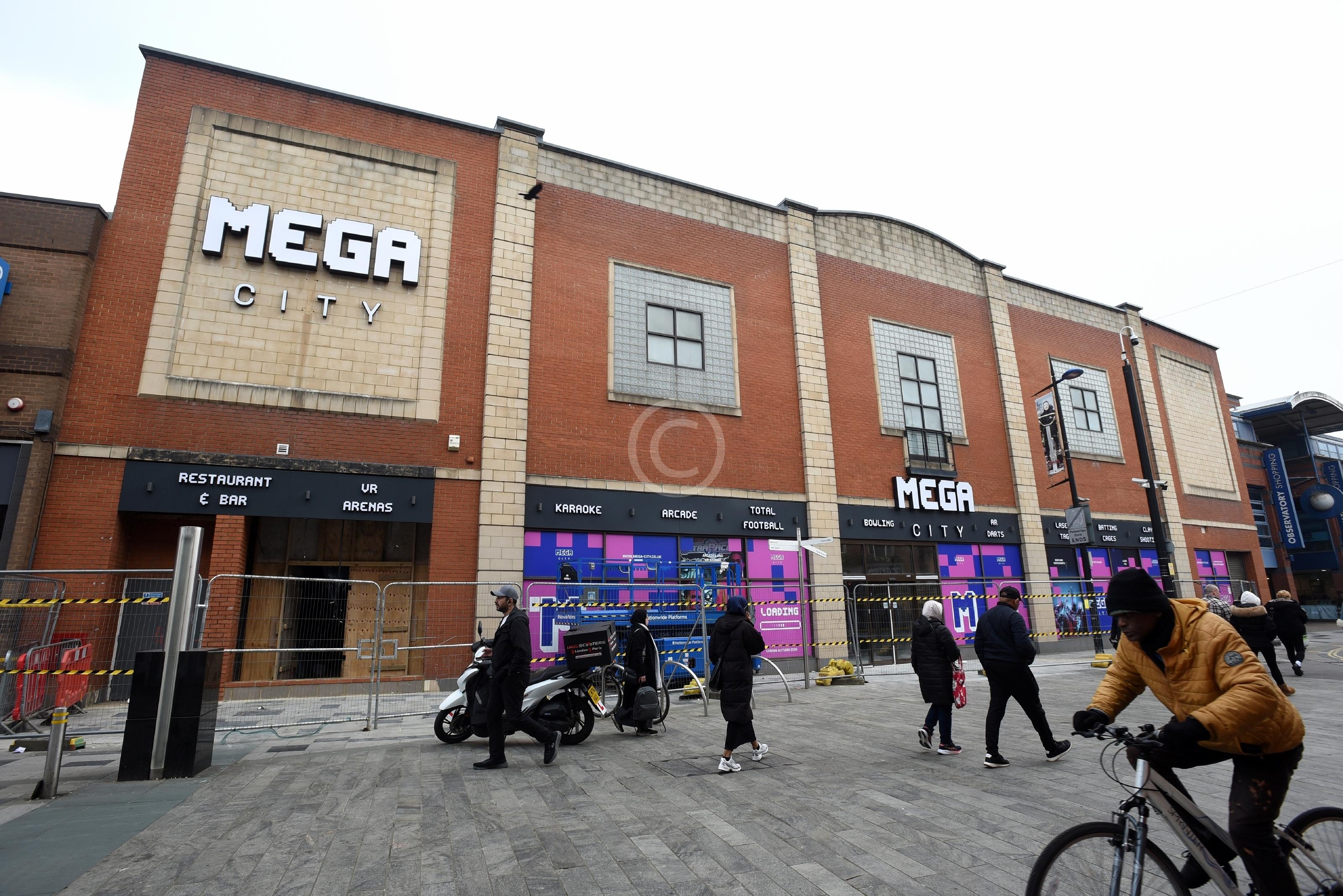 The new Mega City that will be opening on Slough High Street . It will feature lots of entertainment and games facilities. Signage has now gone up.