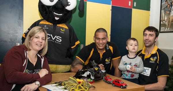 Rugby heroes, a friendly wasp and a touch of disco brought Christmas cheer to children in hospital.