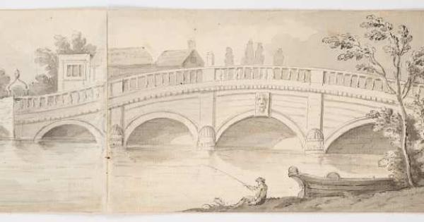 The painting is inscribed and dated “Henley Bridge Augst 4th 1814”, on the lower left and on the reverse is a sketch of a large house in a parkland in pen and ink and grey wash, on two sheets of joined laid paper possibly from a sketchbook.