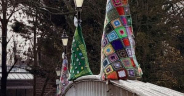 FIVE colourful crocheted Christmas trees have been attached to street lamps on Whitchurch Bridge.